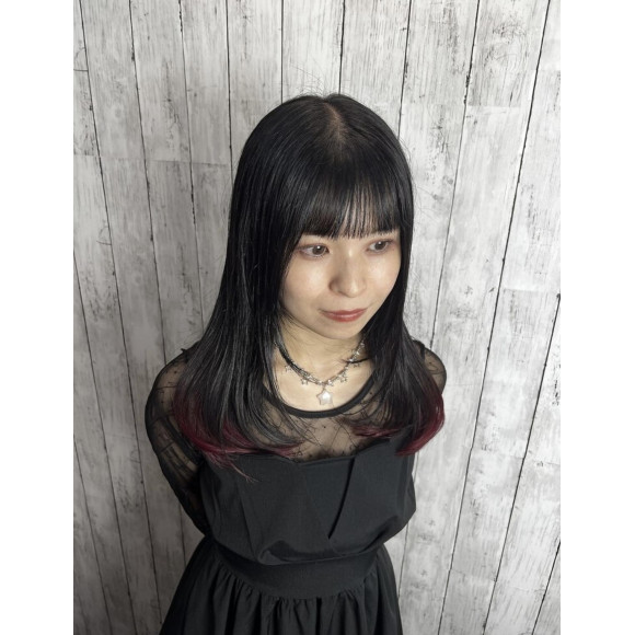 毛先をレッドカラー、表面をブラックにしたエンドカラーです☆