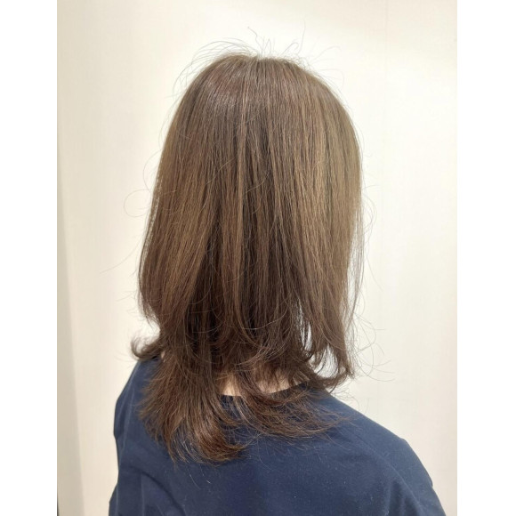 根元の陰影を活かしたカラーでベージュ系ブラウンをやわらかく立体的な雰囲気へ! 髪を下ろしているだけでもキマる、人気セミロングスタイル★