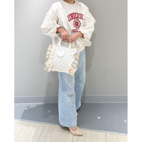 大人気のフリルBAGにNEWタイプが登場しました!キルティング×ビジュースタッズが華やかな印象に♪ビジューが大きすぎないのでデイリーにもオススメ◎華やかなレースとチュールのフリル装飾は春夏コーデにぴったりです♡