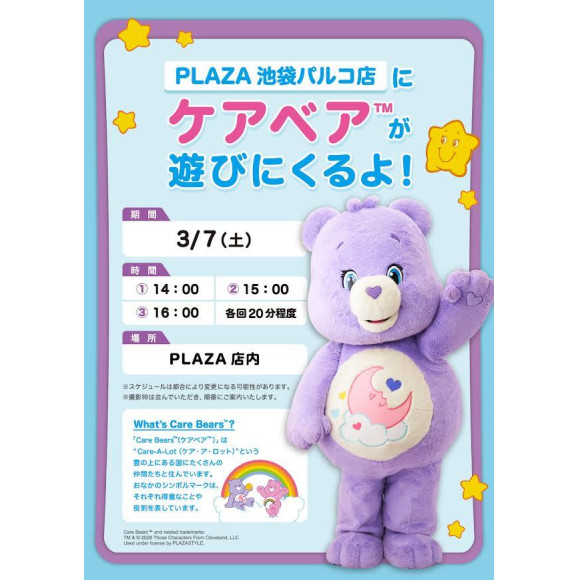 PLAZA 池袋パルコ店では3/7(土)大人気の「ケアベア™」が遊びに来てくれます!