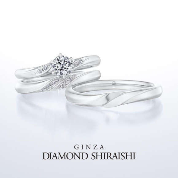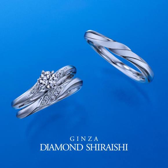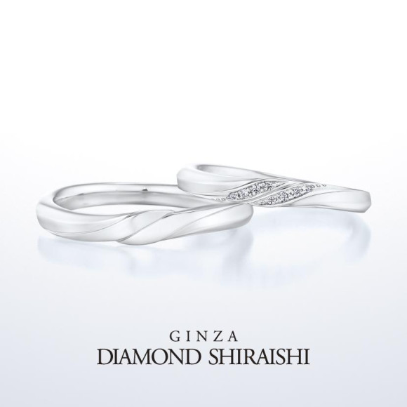 重ねて着けることで、幸せが連鎖するようにダイヤモンドの輝きが美しく繋がり、より強く広く煌めきが広がっていきます。ウェーブラインの柔らかな重なりは着け心地も良く、ふたりの日々を照らし、愛に満ちた未来へと導きます。
