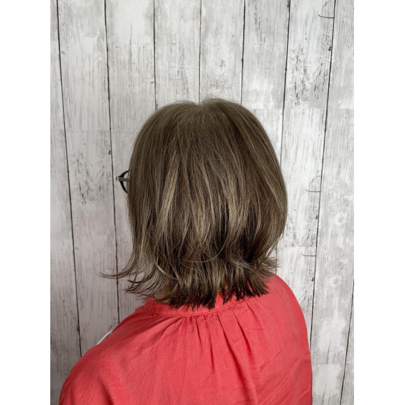 ベースカラーは明るめのグレージュカラーで白髪染め♪