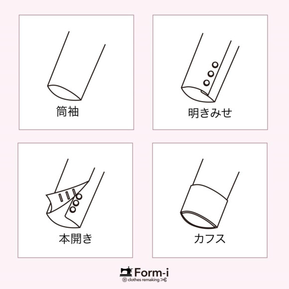 袖口にカフスやスリットなどのデザインがあっても、お直し可能です。袖口でお直しができない商品は、袖山(肩)で袖丈を調整いたします。