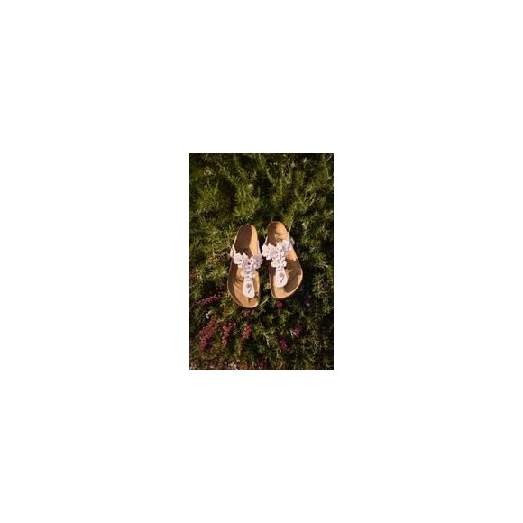 SIENAは、クロスストラップにフラワー装飾を施したデザイン。足をやさしく包み込むフィット感と、女性らしいシルエットが特徴です。